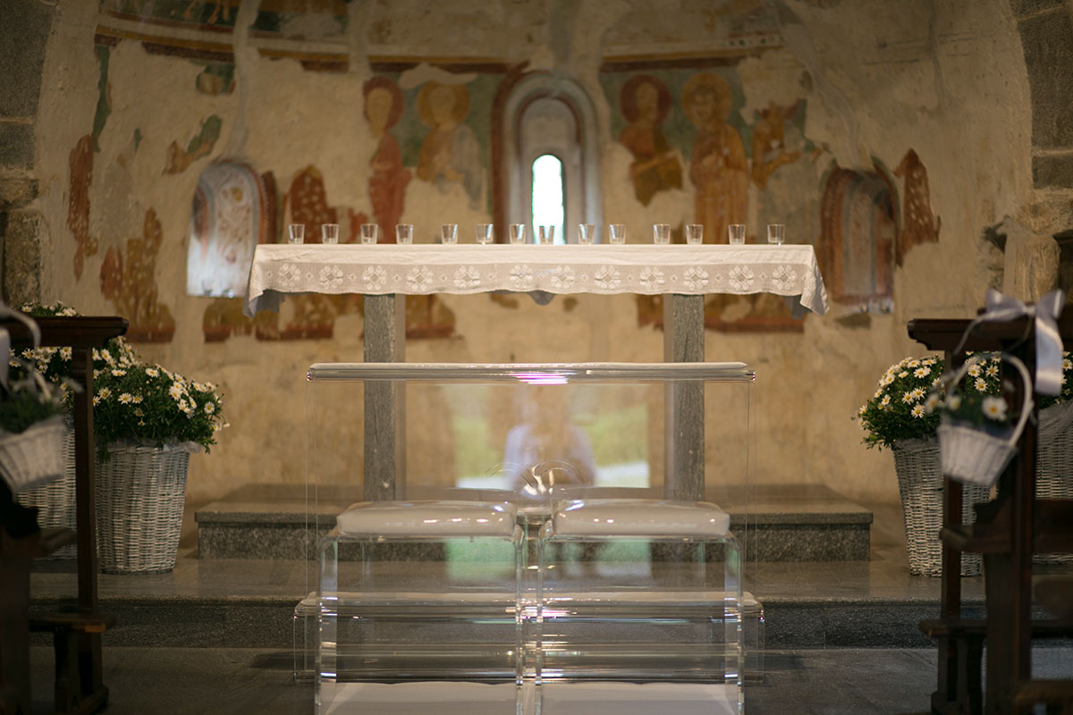 The chapel preserves its ancient charm intact, as if suspended in time. A simple yet magical presence, consolidating the evocative atmosphere that characterizes the Castle of Jerago and its gardens. Its presence also offers the opportunity to celebrate the religious ceremony on site—a practical option not to be underestimated, making the castle one of the most beloved and fully equipped wedding venues in Varese today.