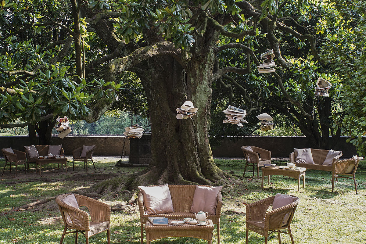 A definire il perimetro del secondo terrazzo di giardino troviamo le Siepi di Bosso e le Rose mentre gli angoli ospitano i due alberi di Cachi. In questa verde area troviamo un bellissimo Melograno, alcune piante di Alloro e il Calycantus, albero che fiorisce a gennaio regalando un intenso profumo.